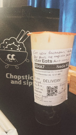 Always had issues with types of Boba pearls & different labels/names they use so I specifically asked for the black tapioca boba balls & specifically not the Crystal Brown sugar jelly pearls which I hate so much so made sure to mention that in Notes on Uber eats and we all know how most business don’t really care with customers whom they will never have to see face to face so why bother make an order with care right 🤦🏽♀️ But ChopSticks & Sips employees were so understanding and compassionate