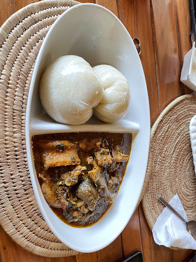 finally the waiting time was 45 minutes and why not we had ordered 3 different meals..Edikang ikong and gari for me.. my second best second only to afang soup. 2 had ordered white soup and pounded yam but i think they had poundo. and the other two egusi soup. Have not mentioned their swallow because i have forgotten. we had initially a jug of chilled Paln wine served in coconut shell cups. never seen such novelty ever and it was worth it. did I say the Palm wine was very very cold? well some of us are still tipsy since.
