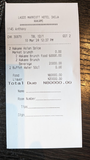 Read moreWhy 2 stars? This is an American hotel chain and they are running things like they are not. Example: pay 40k naira for Sunday Brunch buffet and get 2 alcoholic drinks.