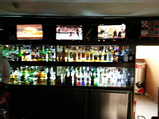 There's a bar near the entrance and you will often find football on the screen.