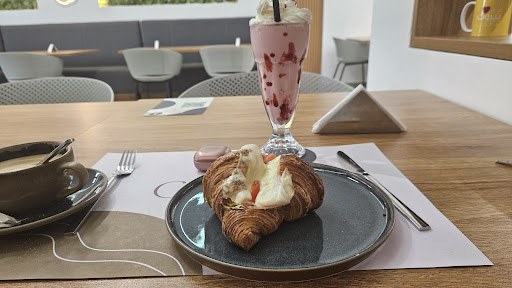 The location was a bit hard to find as there is no sign outside. I called and I received direction. Went for Sunday brunch after church. I had the items pictured. The coffee with my picture was great! I am not usually a coffee drinker but I made a concession so I could see my picture!. Loved the stuffed crossiant and the milkshake was better than most I have had