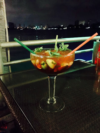 The atmosphere is perfect as you are sitting right in front of the Lagos lagoon with a view of Ikoyi on the other side.