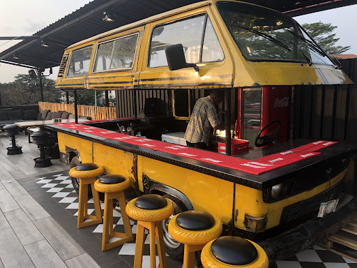The first floor has the indoor restaurant cum lounge setting, while the second and uppermost floor had the outdoor area with the converted danfo bus bar which lends this artistic splendor its appellation.