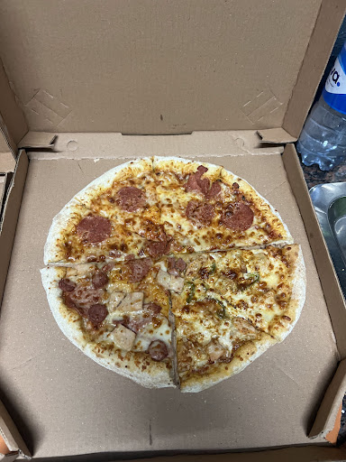 Not bad,tasty pizza (which could be more classic 'pizzaish',though),well made,generously enough proportioned (we ordered a very large, though; family deal,came with wings on the side and 'Coke',greater variety of drinks expected!) Well located place. The parking marshals could be more up and doing about their job,though; cars could be better parked under their watch!