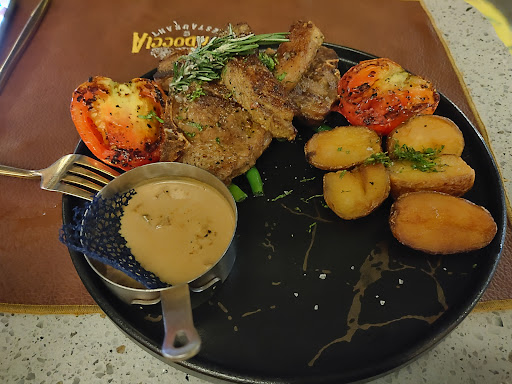 Read moreOkay I decided to try this place out after much force from my friends. We got there early enough and there was enough parking available, I don’t see the need for valet service if there was space in front of the building . We paid for that service and I thought that was totally unnecessary. Num 2, immediately we stepped in I noticed there was nobody there and we were the only guest in the whole cave 😁😁 for me that was a red flag 🚩. But we still went ahead to order , hoping it was just because of the time which was by the way 7:45pm. I ordered from the starter menu, i ordered lamb cigar roll and prawn pri pri and it was a disaster!!! My God, I have never eaten a tough prawn before in my life it was as if I was chewing beef. The lamb cigar didn’t have any lamb in it at all. It was all batter and mind you , it’s not the sort of soft crispy batter it was more like dough bread. Hard and pulley 😁 num 3, my friend ordered the lamb from the main menu and a side of their special rice , jeeZ?! It was a sour sight. The lamb was not lambing at all. So, they decided to compensate me with desert by giving me a complimentary cheese cake which was by the way The worst cheesecake I have ever had in my life. Kapadoccia!!! You guys need to stop this and improve on your pricing and quality of the food you serve. It’s a scam!! I will give you a 5 for customer service though. The waiter that attended to us was very polite and he tried to help and showed empathy that we weren’t satisfied but it’s not his fault. Management needs to fix the menu , get good supply, store your food properly and serve fresh food if you want to charge that insane amount of money you guys charge. I had to go get dinner somewhere else because I couldn’t eat anything, and we paid for it,...