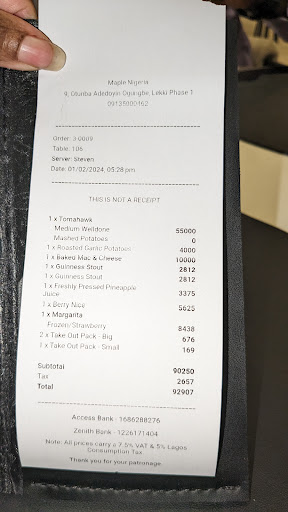This has been my most disappointing dining experience in Lagos to date. I have no intention of returning, nor would I recommend it to friends or family.