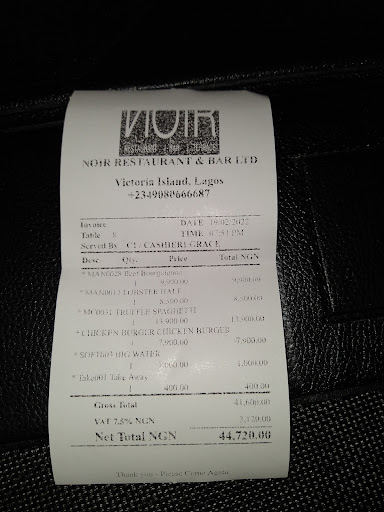 Read moreThe decor of Noir Restaurant is elegant and will not disappoint. I was very impressed with the ambience, nice music which was not too loud, and very attentive servers. My partner and I got seasonal veg, the roasted chicken with spicy honey mustard dressing, and the roasted pork dish with garlic potatoes. The food is cooked well, and portions are generous for a fine dining establishment. Almost everything was to die for: the texture and flavours of the chicken, the vegetables, and the potatoes were all perfect. However, I was disappointed by two things: