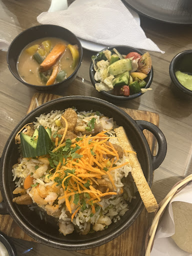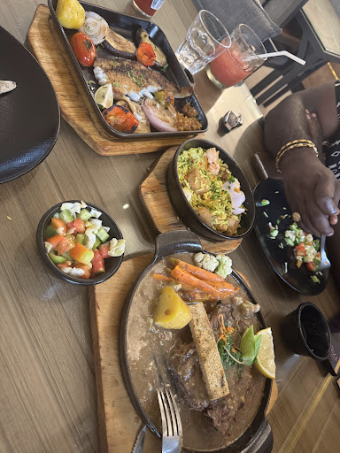 For entrée we ordered a garlic steak with jellof rice and seafood fried rice with grilled fish. Both were not good and tasteless. I had to send my jellof rice back to change for chips. Because there is no way in this Nigeria. No way. This is how jellof rice can taste. The rice severely overcooked, the sauce was like pasta sauce. With a full staff of Nigerians… I just know the chef cannot be Nigerian. The seafood fried rice. Tasteless. We asked for a pepper sauce and the table had salt and black pepper. So I was able to add flavor to the dishes but I shouldn’t have to when visiting a restaurant. My garlic steak was a gravy based extremely tough piece of meat. Not a garlic sauce. The veggies were over cooked. We spent about 66k and ate what we could so it wouldn’t be a complete waste of money.