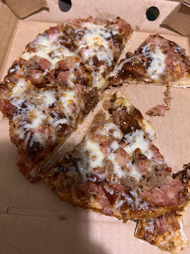 Nice shop & Their pizza crust was very perfect! but Its not my kind of pizza! It has too much sugar syrup and sauce topped after baking leaving a fresh taste and my kid could not stand it messing her hand up. The Security man was more trained than the staff on the counter. The staff at the counter could not greet, doesn’t have knowledge of their product he kept on turning to ask another staff in the kitchen. They seem to be out of stock with many pizza ingredients as i kept on hearing its not available from the kitchen guy. The prices on the menu are not used, they were different from the prices the second counter lady was telling him when he asked. I settled for what was available “something meaty & sweet chilli chicken”, the meaty was meaty but for the fresh bbq sauce but the sweet sugar syrup messed it up and there was nothing...