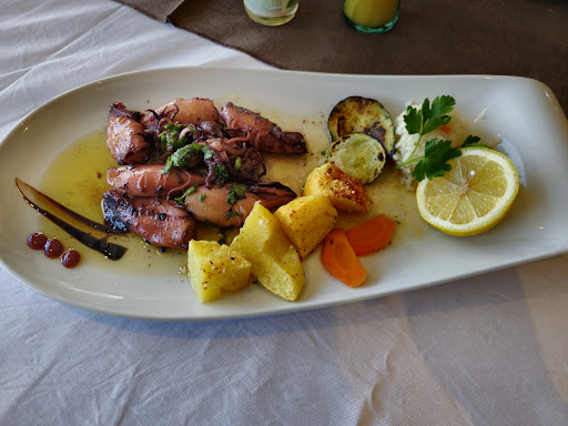 Read moreWe had the Macedonian salad and it was good. We ordered 3 "house specialties" and the pork with mushrooms was pretty good, clearly cooked fresh. The best of the lot. The pork knee and pork stew were below average. Dry and not much flavor. Like it has been sitting under the heat lamp. Not fresh. Wine selection is good and we very very, very happy with the service. Very nice and helpful. It's a nice room with a bit of a view. Restaurants have off nights (it was slow when we ate) and this was one for them, but I can see where the good reviews are coming from. There is much better food than we had tonight for less nearby, but again, it's probably worth another visit on a weekend, maybe. Ask for...