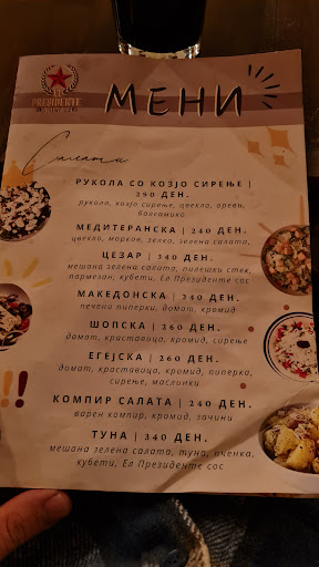 ⭐️⭐️⭐️⭐️⭐️ El Presidente Bar is hands down one of the best spots in Skopje! From the moment you walk in, the vibe is unmatched – classy, cozy, and inviting. The staff are incredibly friendly and attentive, making sure you feel welcome and well taken care of.