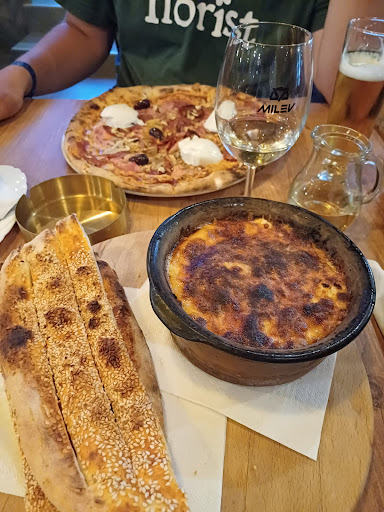 Read moreWe had the best dining experience we had in Macedonia so far in this superb establishment. Not only is the staff friendly and efficient, but the food tastes divine! I assumed the melted cheese would be much like eating pizza at the end, but it definitely surprised me for the better. Crispy bread full of sesame dunked in oozy mixture of feta and mozzarella cheese, now that is GOOD! The pizza had an excellent crust too, and the vegetarian one had fresh ingredients. Their tomato sauce could use some work, but those peppers were to die for. Last but not least, for only 200 MKD you can get half a litre of their house wine, and it was so enjoyable we ended up getting a second jug. Much...