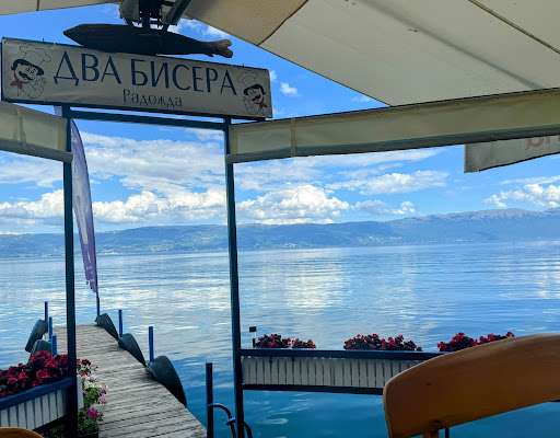 Read moreWe have been lucky to come to Dva Bisera (Two Pearls) on a calm, sunny day with just a handful of tourists. The food is fresh and super tasty. We had traditional Gomleze, the best so far we had tried apparently done by a 90 years old lady from the village still making gomleze in the most traditional way; Macedonian salad, garlic dip and Belvica for fish with some home made chips. For desert we had tulumbi and baklava! Excellent food at the most tranquil spot on the Ohrid lake. Definitely...