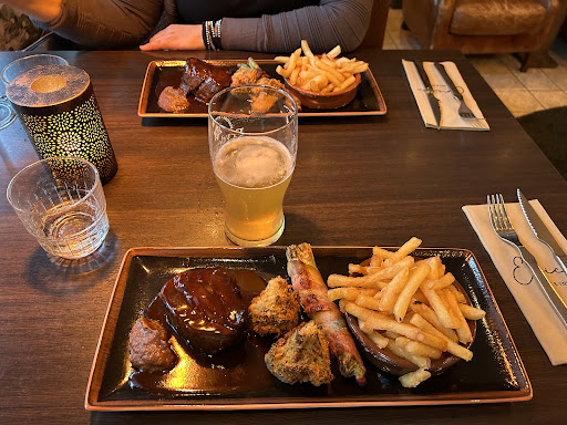 Read moreFood looked good on the paper and plate but beef was not so great. The surface was good, great umami taste but inside was watery tasteless mass and had a slight taste of liver, 3/5 at best. Broccoli and bacon was pretty dry. Maybe they were premade and just re-fried before serving? Fries had no taste apart from the frying oil. For 38€ I’ve had much better food. Beer was great though and the...