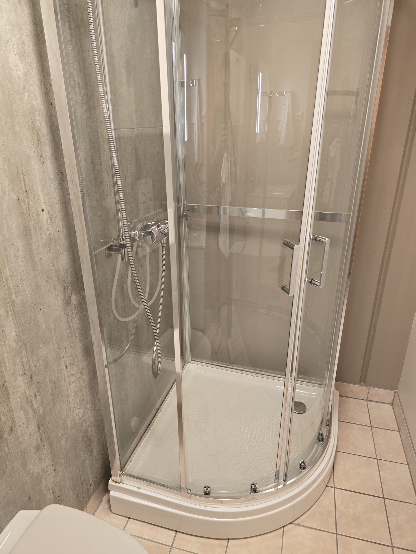 Pros|- Spacious apartments with outdoor deck|- Free bfast if included in your rate|- Restaurant with an outdoor deck|- Free, small parking lot on-site|Cons|- No AC in the units with a very small window in the bedroom|- Must pay for extra towels|- Poor shower buildout|- No housekeeping ||This is a 2-star hotel labeled as a 3 star hotel. The check in process is simple as everything is already prepaid. You can either get a room on the 2nd floor or on the 1st floor. For 1st floor units, you walk past the back of the kitchen to get to the units. These have a living room and deck in the front and the bedroom in the back. That’s important to understand b/c the 2 x 2 window in the bedroom faces the back walkway by the kitchen. This means that you will barely get any airflow and likely get all the smells from the kitchen. ||Each apartment has a spacious living room and a kitchenette if you wanted to cook your own food. Note, there are multiple signs stating you will be fined if dishes are left unwashed. However, the signs are confusing as the same sign has different price on it (one is for $200 and another for $250). There is also furniture on the deck if you wanted to sit outside, right on the marina. ||The bathroom is spacious, but the shower is small. It looks like the shower was added after the initial build out. The door of the shower does not close all the way, which can result in water splashing out a bit. ||Our biggest complaint, however, was that when we went to ask for couple additional towels, we were told that a hand towel is $6/day and regular towel is $12/day. Considering the room rate you are paying at the hotel and that it is labeled as 3-star, we were floored that they would charge for extra towels. It’s not like we were trying to sneak them out, we just needed an extra towel for my wife to use on the pillow due to allergens and her allergies. ||The hotel does have a nice restaurant on the patio, overlooking the marina. We did not dine there as their vegetarian options were limited. Their morning breakfast was also limited, catered towards meat but they did give us some fruit from the kitchen when we asked if we could have a banana. ||Unfortunately, if you are spending time in Flam, there’s no luxury option – all the hotels are outdated and overly priced. However, the other hotels do have AC and free towels, unlike...