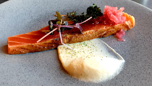 To Michelin stars? After a polite and efficient reseption we got a table with a view. We chose the food festival menu. For causes of pure innovative delight. The first cause was a dream of smoked trout, ballansed with jerusalem artichoke cream, pickled red onions, crisp green cabbage and a fantastic glaze. The Riesling matched the dish perfectly. Our expectations increased. The second cause was equally perfectly presented. The lobster bisque with chanterells, fennel, pea sprouts and crab meet. A beautiful chardonnay bound it all together. The heat and the subtile smokey flavour tickled our tastebuds. The main cause was another new invention. Lamb cooked to perfection on a bed of delights. Sweet corn puree, fresh berries, artichoke hearts, pea sprouts and roasted corn. The Rioja with body and dry long finish was a Devine match. A chocolate creation full of nutty flavours, caramel and crunchy nutts came last. The dessert was delicious and so was the Italian sweet wine. Thank you for a fantastic evening. We will definitely...