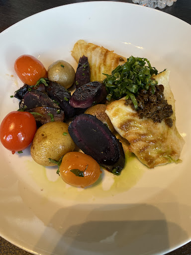 We order 2 pan roasted turbot, a mussel and an entrecote, 1 glass of red wine and a bottle of white wine, the white wine comes warm and after the food has been consumed🤨 and now we have a another waiter. 2 of the dishes was also cold.