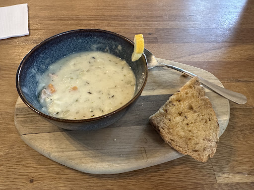 Hard to rate this one. Looked a nice place, good atmosphere and very nice staff. My catfish burger was really tasty. Fish pie was good quality but the baked potato side was literally a small new potato baked in the oven, just one! The real problem was the pizza. We were drawn in as my daughter really struggles with food and a simple pizza is always a winner. The pizzas were honestly terrible! A flour tortilla wrap, smeared with far too much tomato puree, thick and overpowering. Little cheese and really poor quality chicken, spongy supermarket packet stuff. My advice to the owners? Forget the pizza, take it off the menu completely. It is truly terrible. Add a few more potatoes to the mains and this could easily be a 4 or 5...