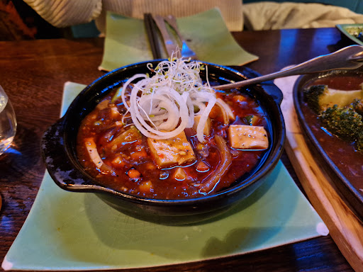We had the mapo tofu, the veggie fried rice and the broccoli, all of which were absolutely great. The rice was really savoury and not oily, it was so yum. How fried rice should be. The tofu in the mapo tofu had that great melt in your mouth texture, and the sauce was sezchuany but not too spicy. The broccoli was peppery too but had a different but also great taste. Three really distinct dishes. We also had some veggie dumplings which I personally thought were a little plain, so I'd skip these and go for the other amazing dishes!!