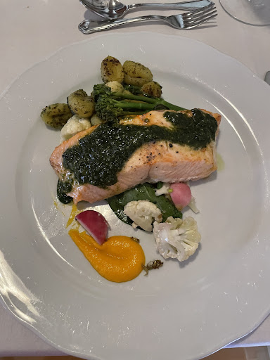 I followed the instruction and found my way here at 6 pm ish and it was empty…I went ahead and asked for recommendations. Got a fish dish and wine to pair. The fish dish was SO SALTY :’(. I ate the veggies and left the fish 3/4 untouched.
