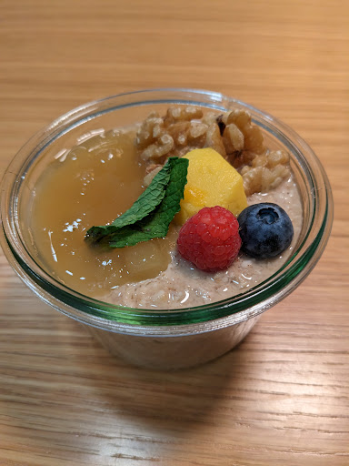 Spacious place on the ground floor of the bank building. Nice glass walls for the light and view outside. Some semi close sitting available. Selection for breakfast is modest and is not anything special. Pastry was not yet delivered at 8:30, so my husband had to be satisfied with scones. Coffee is decent, but again nothing excellent. Service is very friendly, loved our interaction. May be this place is more of a business...