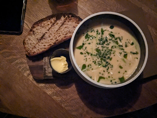 Read moreAbsolutely no service there. They just bring food and take away empty plates. That’s all. No smiles, no greetings, barely answers to any questions. You just got that strong feeling you’re disturbing. Never had such experience somewhere else over the whole country. Didn’t even got a napkin during my lunch. Also no fork and no knife for the fish soup with a fish filet so I had to cut it with a spoon. The food was just okay. It looked better than it tasted. The fish was over cooked and became pretty chewy. The soup was too flat but there was no salt and pepper and no one you can ask for it. The burger was like something you can cook by yourself at home. The price was fair. Also nothing special about the atmosphere. Especially if the next table smokes when you are dining. Quite disappointing. No...
