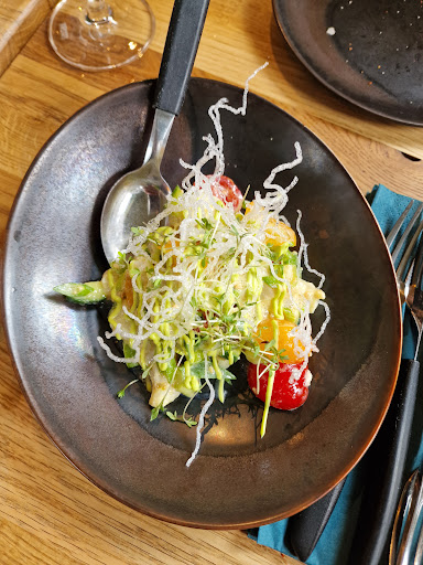 Speaking as a thirtysomething born and bred Bodø native: This is probably the best dining experience you can get in town these days. I highly recommend the six course set menu with the wine pairing; great produce, delicious flavours and equally good wines throughout. Highlights from our dinner included the halibut ceviche and asparagus tacos.