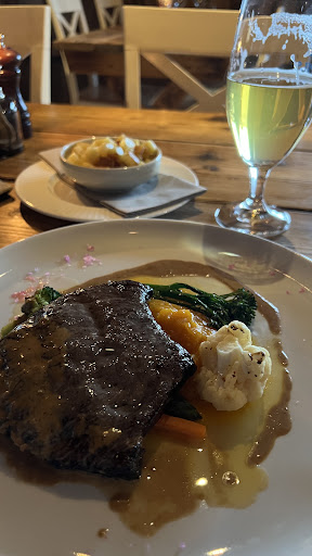 Read moreThe order was taken promptly enough but after that it took inordinately long . A lunch stop on a cruise became a long stop . In the order with the meat , I didnt want Hollandaise sauce . This took a long discussion with the Manager , who was reluctant. But it having been accepted , when the order finally appeared , the Hollandaise sauce was very much there. In the wine by the glass the Manager declined to let the wine be tasted citing a Norwegian rule saying that alcohol could not be given away free. ( We dined in many restaurants in Bodo, Oslo and in Lofoten itself. No one else had this problem.) The Manager initially friendly and welcoming...