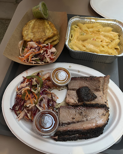 Read moreWe had chicken and waffles, and a brisket sandwich with mojo fries and sweet potato fries, and everything was authentic and delicious. When you peek inside you can see the big smoker grill that implies you can trust their BBQ. The chef himself brought out our dishes and explained the sauces: the scotch bonnet sauce is proper hot, there's a coriander sauce, a mango sauce, and my favourite sauce tasted like a piña colada - pineapple and coconut for the sweet potato fries. And of course the BBQ sauce is perfect, tangy and just the right consistency and amount of sweetness. I would have taken a picture of the food, but it was gone before I got the chance lol. Worth a detour if you're...