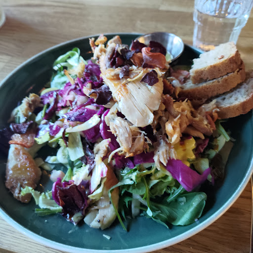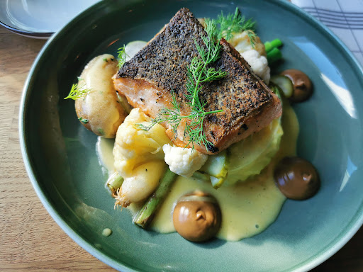 Read moreSommeren er kommet for fullt til Sørlandet, folket er godt igang med vaksinering og byens kjøkken er i full gang. Denne gangen gikk turen til Bønder I Byen som ligger på øvre torv i Kristiansand. Her tilbys det de kaller urban bondekost. Var på plass litt tidlig på ettermiddagen, så det var ikke så mange gjester enda... Så var det bare å kjøre full pakke med en treretters 😎 Til forrett ble det servert Spekemat fra Slakteren i Søgne. Tilbehør besto av syltet grønn paprika fra Hesnes, syltet rødløk, holtefjellmajones og potetvaffel... Spennede dandert på ei trefjøl 😀 Denne var knallgod, god mix av spennede smaker. Så var det tid for hovedretten. Da ble det Ytrefilet av storfe og kalveskank fra Jæren Sommergrønnsaker, løkmarmelade, syltet rødløk, fløtesaus og potetterte. På tallerkenen var det to fine stykker ytrefilet... Men kunne ikke finne kalveskanken... Den var tydeligvis ikke som jeg forventet, men en liten paté-lignende sammensetning av kjøtt gjemt under løkmarmeladen. Så når det var opplyst var det bare å digge inn. Masse gode smaker, potetterten hadde virkelig fått bada seg i godt smør, nydelig saus og kalveskanken hadde virkelig smak i seg. Selve kjøttet hadde jeg forventet var mørere... Måtte jobbe litt for å komme igjennom. Så var det finale med en dessert. Tjukkmelkpudding med sitron, ristede pistasjnøtter, bringebærsorbet og marinerte bringebær. Visste ikke helt hva jeg kunne forvente med navnet Tjukkmelkpudding😉 men denne smakte veldig godt, frisk syrlig smak sammen med sorbet gjorde godt etter et kjøttmåltid. På drikkesiden ble det en læske med hveteøl fra Nøgne Ø Det Kompromissløse Bryggeri A/S Som var helt innafor 👍😉 Totalt sett et helt greit måltid, men reagerte på at det ikke ble spurt om hvordan jeg ville ha kjøttet stekt, når glasset var tomt ble jeg ikke tilbydt mer... Og ventetiden mellom rettene var i...