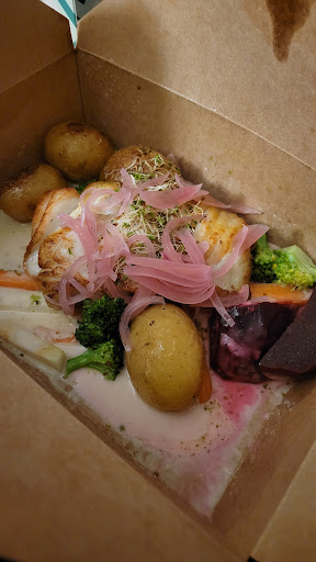 The sourdough was very good, and went well with the sauce provided. Honestly a 5☆ bread on its own. The avocado toast was good, a bit too much of the hummus the avocado wasn't very evenly spread out. Still a solid 4☆ flavor-wise. The fish was fantastic, I believe it was cod, and was so flavorful and tender. A good sauce that was a little on the runny side, but no fear of it leaking from the box. Not a fan of the beets, and the broccoli could've cooked a little longer, but a solid 4☆ dish as well. All in all a fantastic dinner, even...