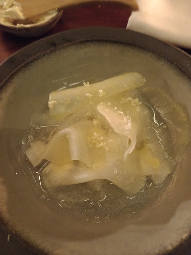 I also had crab claws, but they were covered in a sticky sauce making the meal a mess. Only 2 of 3 claws had been pre-cracked by the chef, so with all the sauce I made a mess of the table when I finally broke the shell of that last one. The dish came with proper utensils and a big wet napkin, but this course can be solved better/more practically. The sticky sauce was also on the salty side and the taste of it was so strong that it kind of killed the gentle crab flavor?