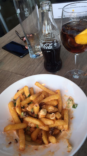 Ingen av de ansatte fulgte opp i løpet av måltidet og vi ble ikke spurt om maten smakte eller tilbudt mer å drikke når glassene var tomme. Vi fikk heller ingen beklagelse for at pommes frites ble uteglemt. Den hyggelige ansatte som ryddet av bordet når vi var forsynt spurte imidlertid om vi ønsket dessert eller kaffe.