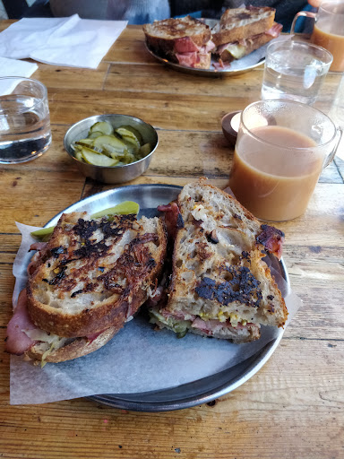 Seriously underwhelming. Firstly these are expensive sandwiches at kr 200 a piece so the expectations were high. The kr 60 orange juice, supposedly fresh pressed, tasted like any concentrate from the store. We told the waitress as much and she didn't respond very well. My boyfriend didn't want to drink his because it just wasn't any good, but we still had to pay for it. My pastrami sandwich was alright. The bread was good, there was enough pastrami, but it certainly wasn't memorable. My boyfriend's salty meat and pickle sandwich had a lot of really chewy bits of meat. So much so that he had to deconstruct the sandwich and cut off bits. Leaving about half the amount of meat. He said the mustard and pickle flavours were a bit overwhelming. So all in all we won't be back. Buy your own nice bread and toppings for kr 400 and I'm sure you'll make better...