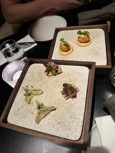 The portions were very small for the price, and the food itself was underwhelming. The flavors were flat, and while the presentation was tidy, it lacked creativity or finesse. The service included explanations of the dishes, seemingly to create a fine dining impression, but the quality of the food and overall experience did not match this intention.