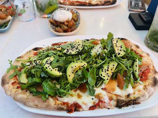 The Pinsa with Salmon was really awful. One of the least delicious smoked salmon I ever had also the (goat) cheese. I would give it 1 star.