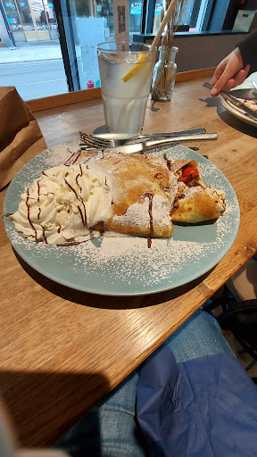 Read moreYou. Must. Eat. These. Crepes. We stopped here three out of the four days we were in Oslo. These are the most delicious treats. Nicoletta and the other staff were so welcoming and patient with us clueless and exhausted travelers as we figured it out. I stuck with the Crêpe du Chef. Since it has fresh strawberries and banana along with Nutella & whipped cream it felt like a bit of a fruity salad treat (that's my logic and I'm sticking with it!), my sons got the Nutella crêpe with added whipped cream, because we don't get decadent treats like this in normal life. The homemade lemonade is delicious. We ordered pink lemonade the first day. Turns out it's actually a fizzy rose flavored drink. Not bad, just different and unexpected as rose is not a normal flavor in American food or drinks. If we ever make it back to Oslo, I'm coming here as soon...