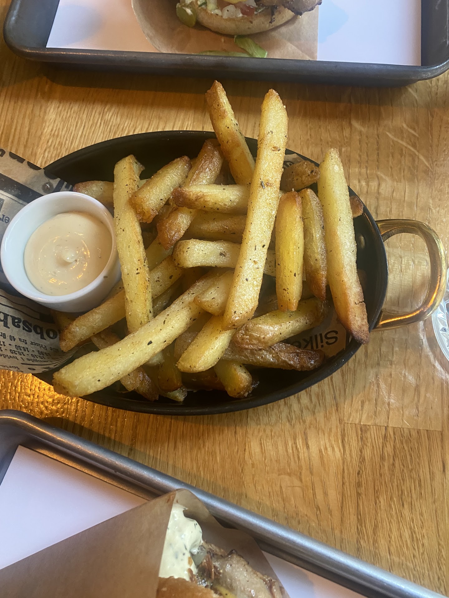 I love the potatoe wedges with both dips. Great tasting burgers, both beef & chicken. I love that they use high quality Stange chicken & beef from StrĂžm-Larsen. Chorizo burger has a lot of flavour, but the chilli might be even tastier with it's awesome sauce.