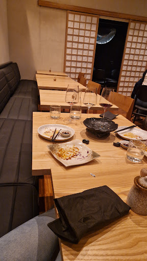 Mixed feelings. I was very excited to have dinner here and left somewhat indifferent. The service needs to improve considerably. They seated us and 10-15 min passed until I could catch their attention to take our order. The menu online shows 8 pcs. maki and 2 pcs. wagyu per person (see pictures) . Upon arrival, the printed menu was 4 and 1 pc. respectively. Disappointing! The food is good, tasty, but nothing super extraordinary (the sushi at Alex sushi is better imo). For 625 kr per person, it is good value, but it does not make you full. Portions are rather conservative. In addition, it seems like the seabass ceviche which was in the original menu (still online at the time of writing this review) has been replaced by a salmon ceviche, which was very plain in taste and unremarkable. Wine pairing menu is also good value and the pairing well executed, but the wines are really basic quality. (You get what you pay for) The timing of the dishes and the wine during the meal was ok but again in the end it took a long time for them to bring dessert , and again after to catch their attention to ask for the bill (and they were half empty at that point). At a point there was not a single waiter on the floor, they were all inside... To finish, I must comment that, even the decoration and design is cute, japanese style, the tables are arranged in a way that feels like a cheap take away Asian place. Charmless, uneven and cramped against each other with barely 25 cm between them (where I have to squeeze my ass over the neighbour table to reach my seat on the sofa - and I am rather skinny!). Felt cheap. For what we paid, it was ok, but I dont think I would go back there to eat a la carte until they have upped...