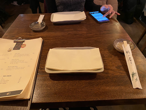 Cons: On the other hand, there was a male server (long hair) who was a bit unfriendly. He made us feel a bit unwelcomed when we first arrive at the restaurant and was not very service-minded. The Katsu soba was ok, but not very special. The truffle cream even though tasted very good on its own, it did not go well with the chicken katsu cutlet - it made the chicken taste so rich and easy to get tired off. I also would rather my veggies be cooked a bit more done. Aside from the good sides I mentioned above, some sides were not that good. The grilled padron pepper was very bitter (I expected chili peppers to be sweet and have some heat), and it did not go well with the Iberico. The Daikon pickles were unevenly cut thus there were some very thick pieces that were not properly pickled and had an unpleasant raw taste. The grilled broccolini was good, however, if you are going to serve the end stem, you should peel the outside a bit since those tend to be very fibrous and unpleasant to eat. One biggest letdown was the wooden 1-time-use chopsticks! I have expected some decent chopsticks when dining out in a fancy restaurant. I did not expect to see those cheap ones you can get at a corner/kiosk sushi store. They were very unpleasant to use as they were shorter and smaller than our usual size of home chopsticks. Also, if you are gonna serve dishes which have pieces of meat and puree, you should provide a knife and fork automatically as it is impossible to eat those kinds of food with just chopsticks (how can one eat puree and cut meat with chopsticks, this is coming from a Vietnamese who have used chopsticks forever).