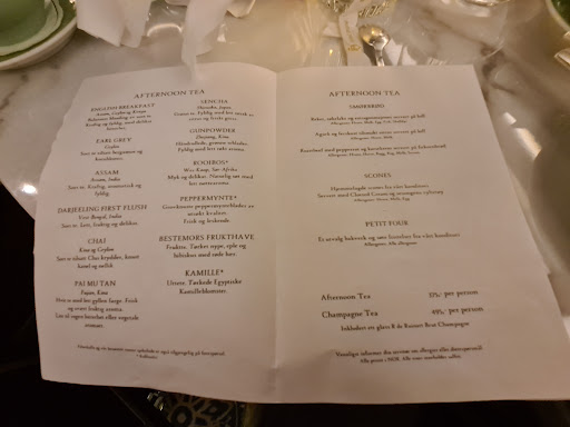 The setting and theme is perfect for a great and immersive classical afternoon tea experience. However that is where it stops. If you are after the classic afternoon/ high tea experience then I would suggest you find another venue. There is no tea menu and the staff didnât offer any alternative. The English breakfast tea tasted nothing more than your average English breakfast from a tea bag. We also had to ask twice for tea spoons. As someone whose a huge fan of afternoon teas I was left feeling rather disappointed and 300+ Kroner less in my wallet. I wonât...
