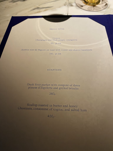 Read moreExcellent food. Rich flavours. Great pairing with wines - they have a long list, so ask for recommendations. For starters we tried the king crab and scallops. Crab came in a bechamel sauce with hints of chili. Could reduce the amount of cheese there. The scallops had a delicious saffron sauce and was my favourite. The turbot had a fresh sauce and was perfectly prepared and glazed. The pigeon sauce was dark and intense, fantastic with the red wine (Bourgogne Pinot noir 2018). The power in this pigeon sauce might be too much for some. For dessert we tried the two that were not the moilleux. Tasty, but not a must, honestly. The petit fours were a highlight together with quality coffee. We did have the waffle with caviar, but unless you really "love" caviar I would recommend skipping it for the ham or oysters. The service level was good. A warm and efficient welcome and seating. A lipstick-stained water glass had to be changed. The restaurant is not big, and the tables are close to each other. Relatively loud music is played, I guess to mask your neighbours' voices. Unfortunately, we often had problems hearing what the staff were saying due to this. It also seemed that the level of service at the tables dependend on which person was responsible. The choice of music was decent, but they should remove the songs with loud vocal performance from...