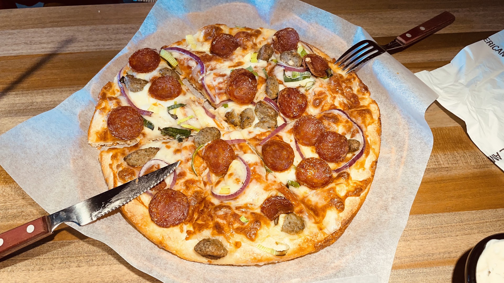 My partner and I ordered two pizzas. Mine was a Green Light Cauli Truffle pizza and my partners was a Oumph! (Vegan meat) pizza.
