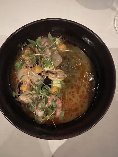 This was a really "fancy" dinner experience. Food and services is top notch. The place has a really nice atmosphere with huge chandeliers and high ceilings. Table layout is a bit weird with narrow winding tables. Just about enough to fit two plates opposite each other. And with all the fancy cutlery it's more than crowded on the table. Food is really good. And though has been put in every aspect of the course. As always there is plenty of time between courses and espect two to three hours for your dinner. Staff is nice but maybe not all that read up on what was served. To ther defences we were a huge group of 40 plus people so they where busy for sure. Everything was pree orderd so guessing what was served become a challenge within tha table. Nevertheless the main cource is still unknown to this day. All our special servings was professionaly handeld without fail. Ower all a excellent dinner experience despite not knowing...