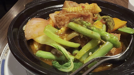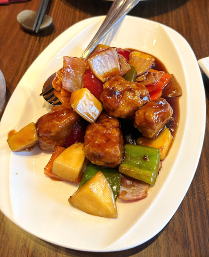 Tried their buddha pot - beware the way the server worded things this dish may have a version that is made with meat stock - check. The server asked how spicy I wanted it and went with "mild". With the red taint the way it arrived, I had worried I wouldn't be able to handle it, but actually it was just right and the sauce was great. Overall, it was still kind of nice, but I'd have preferred more bits of tofu (the 2.5 pieces you see were it) and mushrooms. There's no option for it to come with fried rice instead, not that you really need it.