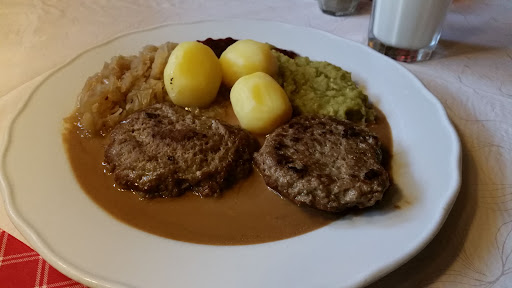 A group of friends and I visited here after reading about their great reviews as we wanted to try some traditional Norwegian food while on holiday! It is a really great vintage restaurant in Oslo serving traditional, homestyle Norwegian cuisine. There is a very local feel to the place and the style and decor of the place is as original as the day they opened! The staff are friendly, they spoke good English and they were helpful with recommending what to order off of the menu! I got the Taste of Norway as did a few others in our group and one member got the roasted bacon. The Taste of Norway is accompanied by sauerkraut, boiled potatoes, mashed peas, brown sauce and lingonberry jam! All the food was delicious and I would recommend the roasted bacon dish over the Taste of Norway! However, the portions were perfect and I decided to treat myself and got the warm apple pie with ice cream for dessert! I highly recommend it. If you are ever in Oslo, I would definitely recommend checking this place out!