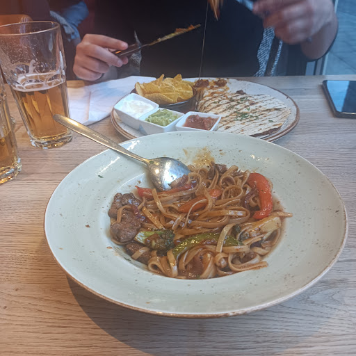 Read moreAttracted by the fact that restaurant always is busy, we decide to come for dinner. Very cosy atmosphere, nice furnitures, especially leather and very comfortable chairs and kind, helpful and fast stuff are worth 5 stars. Food, beef wok and vegetarian quesadilla were both too salty. In quesadilla you could save it with sour cream, in beef wok it was definitely too much salty soya sauce - for my taste food was worth 3 stars. Place worth to visit, understandable why there is always someone there and even if today food was just ok, we will come again to try...