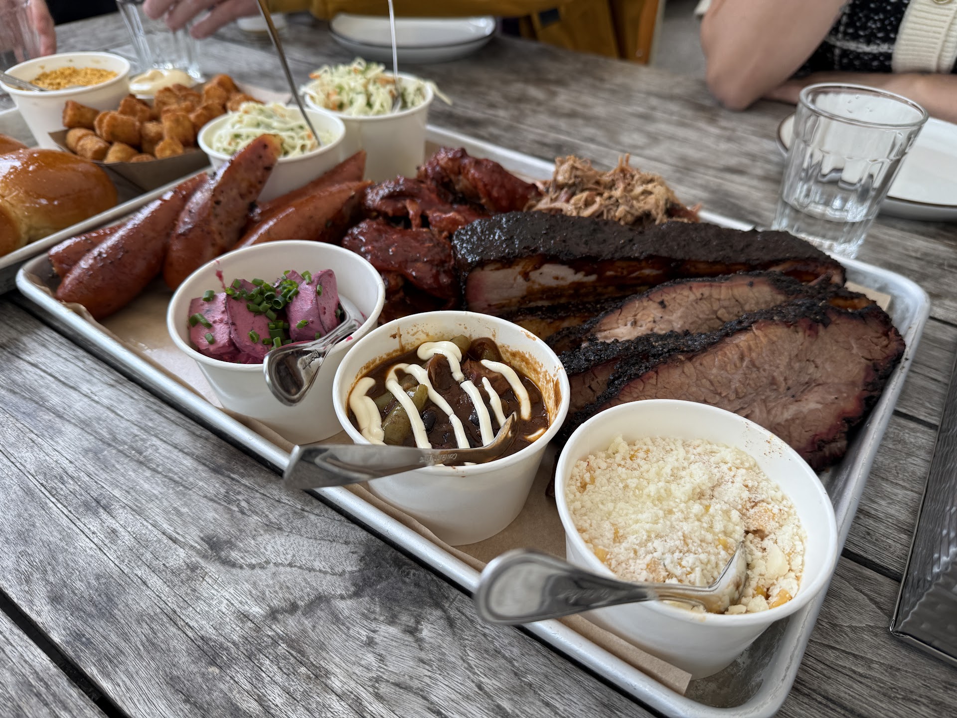 The brisket? A tale of two meats. A couple of pieces were buttery-soft—almost too buttery, sliding around the plate like a politician dodging a question. The rest, unfortunately, were the burnt end bits, dry enough to start a campfire. Not ideal when you’re expecting meat that’s been slow-dancing with hickory smoke for fifteen hours.
