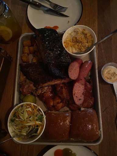 PROS: The location was amazing, right by the Akerselva river - scenic and lively. Their homemade peach iced tea and lemonade was amazing. We ordered the Family pickins, with the short rib upgrade. The short rib was very good, well seasoned with a nice crust and it was falling off the bone. The Mac n cheese and the coleslaw were also excellent. Their homemade hot sauces were also great. The sausage is ok. The service was friendly as well, though a bit slow. Overall, very generous portion that they gave us.