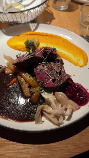 We specifically wanted to try their reindeer so our order was fairly straight-forward! A delicious serving of Garlic gratinated shrimp from Lyngen, grilled sirloin of reindeer at their recommended temperature, and clipfish of pollock from Halvors Tradisjonsfisk. Food overall was absolutely excellent accompanied by excellent service.